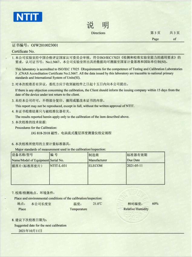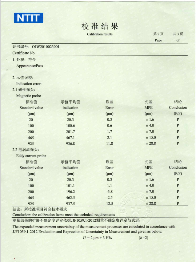 HRC華銳昌涂層測厚儀TC660是用來檢測涂層厚度的專業(yè)儀器,它能快速,無損,精準(zhǔn)地進(jìn)行涂、鍍層厚度的測量,具有可靠性高、穩(wěn)定性好、操作簡便等優(yōu)點(diǎn),涂層測厚儀可無損地測量磁性金屬基體(如鋼、鐵、合金和硬磁性鋼等)上非磁性涂層的厚度(如鋁、鉻、銅、琺瑯、橡膠、油漆等) 及非磁性金屬基體(如銅、鋁、鋅、錫等)上非導(dǎo)電覆層的厚度(如:琺瑯、橡膠、油漆、塑料等),儀器主要應(yīng)用于制造業(yè)、金屬加工業(yè)、化工業(yè)、商檢等檢測領(lǐng)域,是材料保護(hù)專業(yè)儀器。HRC華銳昌涂層測厚儀TC660國家計(jì)量測試中心國檢檢測報(bào)告SCM CNAS NTIT校準(zhǔn)證書。http://m.usatopstories.com/