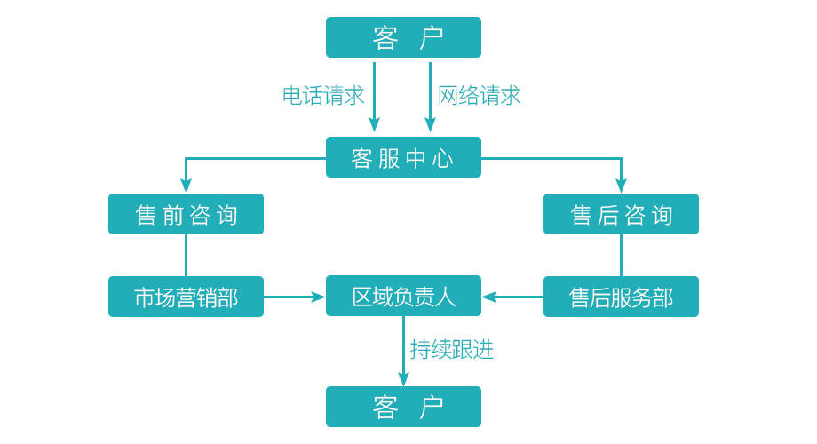 3、無論客戶是電話請求還是網(wǎng)絡請求,客服中心都會根據(jù)客戶需求進行分類后直接轉(zhuǎn)接相應部門,部門負責人會根據(jù)客戶需求轉(zhuǎn)接區(qū)域負責人,區(qū)域負責人將與客戶之間對接高效快捷。