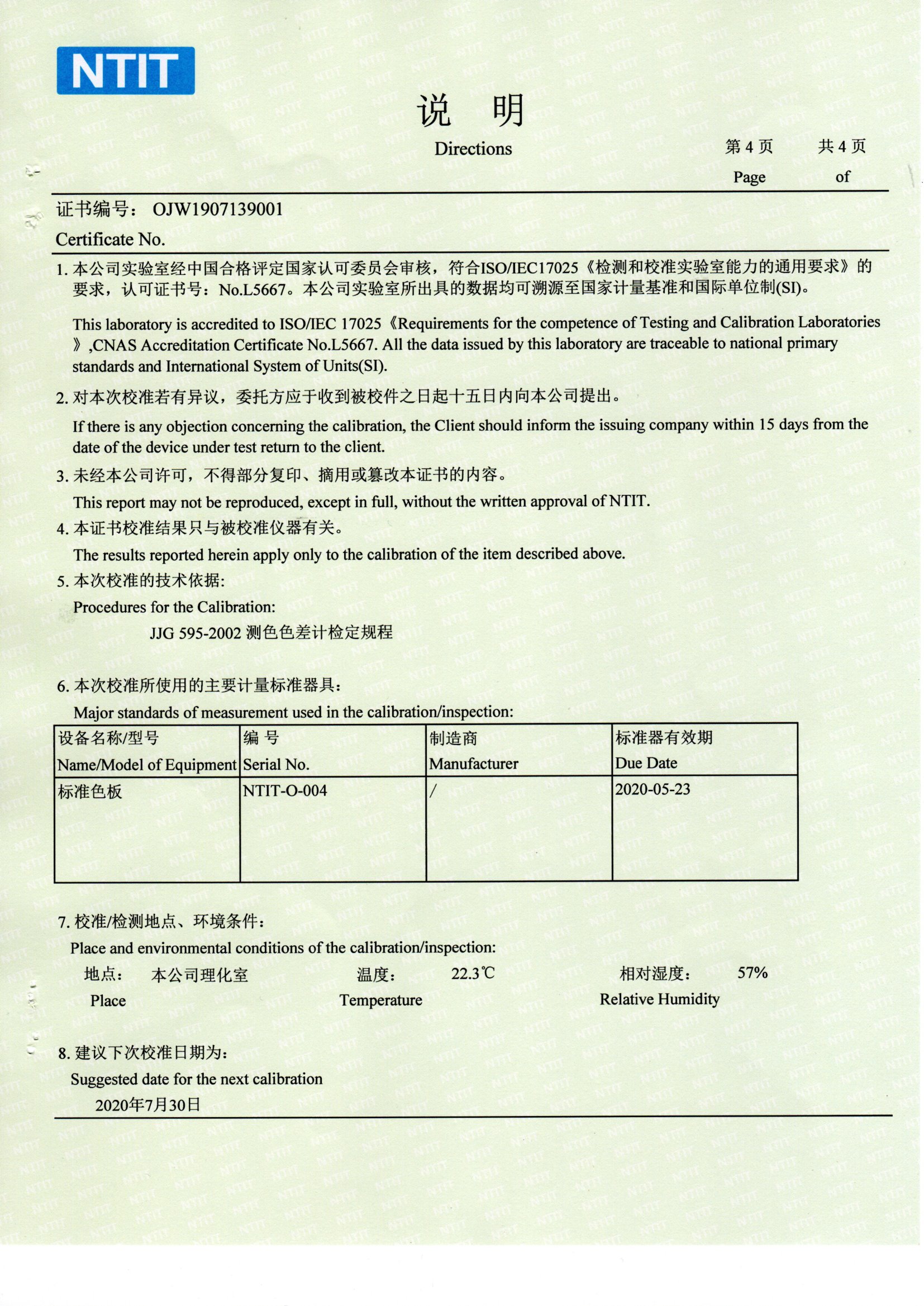 色差儀國家計(jì)量測(cè)試中心國檢檢測(cè)報(bào)告SCM CNAS NTIT校準(zhǔn)證書。